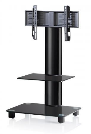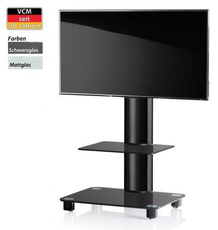 VCM TV-Standfuß "Bilano Schwarzglas" mit Aluminium Standrohr Schwarz und Zwischenboden Schwarzglas