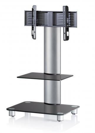 VCM TV-Standfuß "Bilano Schwarzglas" mit Aluminium Standrohr Silber gebürstet und Zwischenboden Schwarzglas