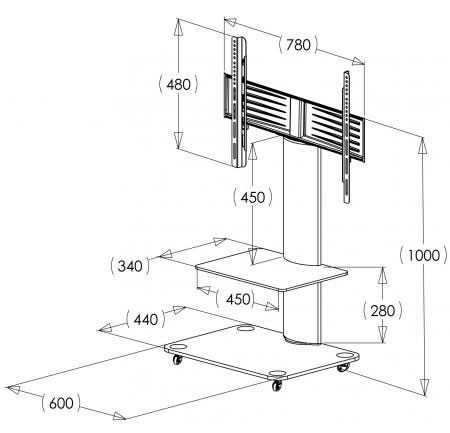 VCM TV-Standfuß "Tosal Schwarzglas" mit Aluminium Standrohr Silber gebürstet und Zwischenboden Schwarzglas